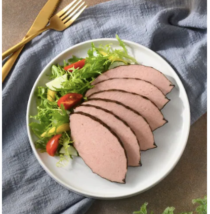 Ingrédients principaux : Eau, isolat de protéines de soja (sans OGM), épaississant (amidon acétylé), poudre de protéines, algues, huile de soja, saccharose, sel, arômes (glutamate de sodium, phosphate disodique de 5'-xanthine et phosphate disodique de 5'-guanine), colorants (oxyde de fer, carotène, colorant caramel) et épices.